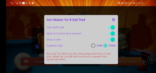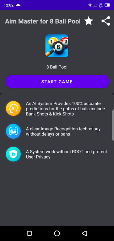 It is a new and latest Aiming App for Android users which helps Android users to make auto aiming and other hacks while playing the famous board game 8 Pool game for free.