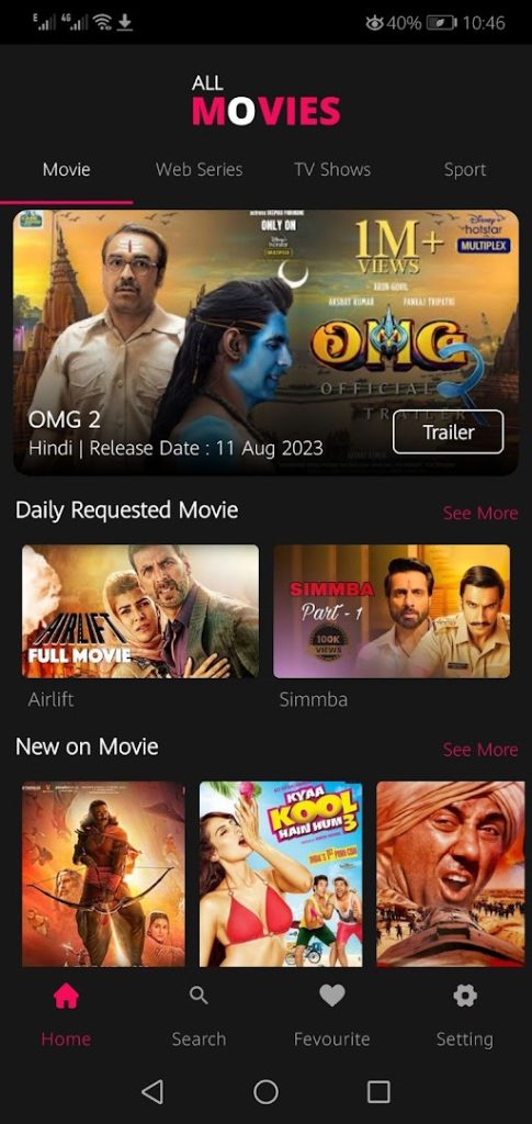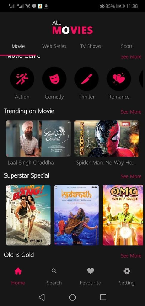 Choose your desired option from the above menu and enjoy unlimited entertainment through this new movie app for free.