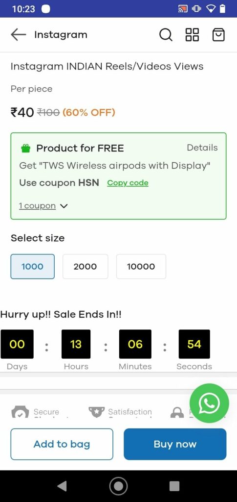 If you want to order more than 10000 then use the buy option which helps you to enter a customized number up to 99999. To use the buy option you need to pay money using various online transaction options.