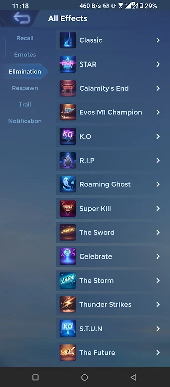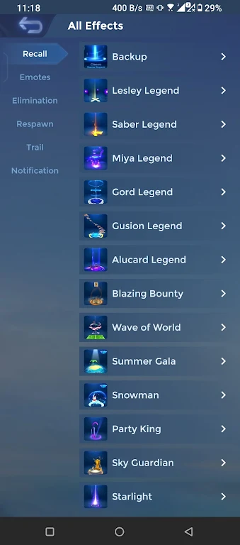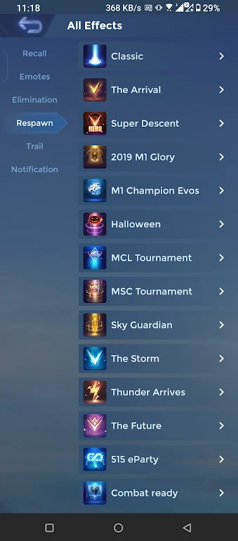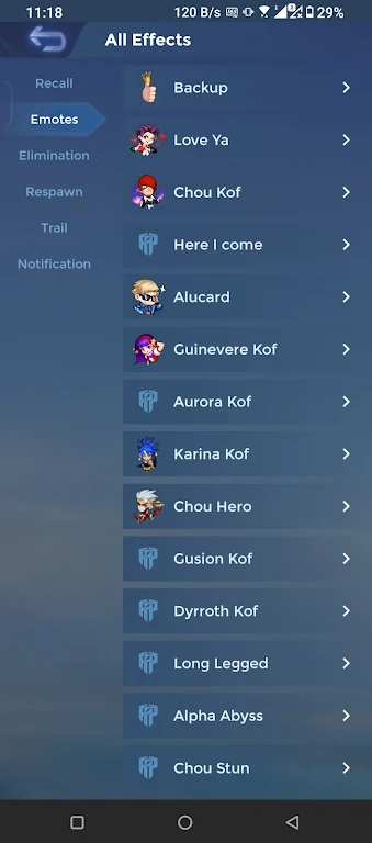 Once you open the app you will see the mian dash where you log in to this new app. Once you log into this app you will see the main dashboard of the app with more than 100 ML skins, Emotes, recalls, spawns and many more MLBB game items and features. Tap on the game item whcih you want to inject into your MLBB game.