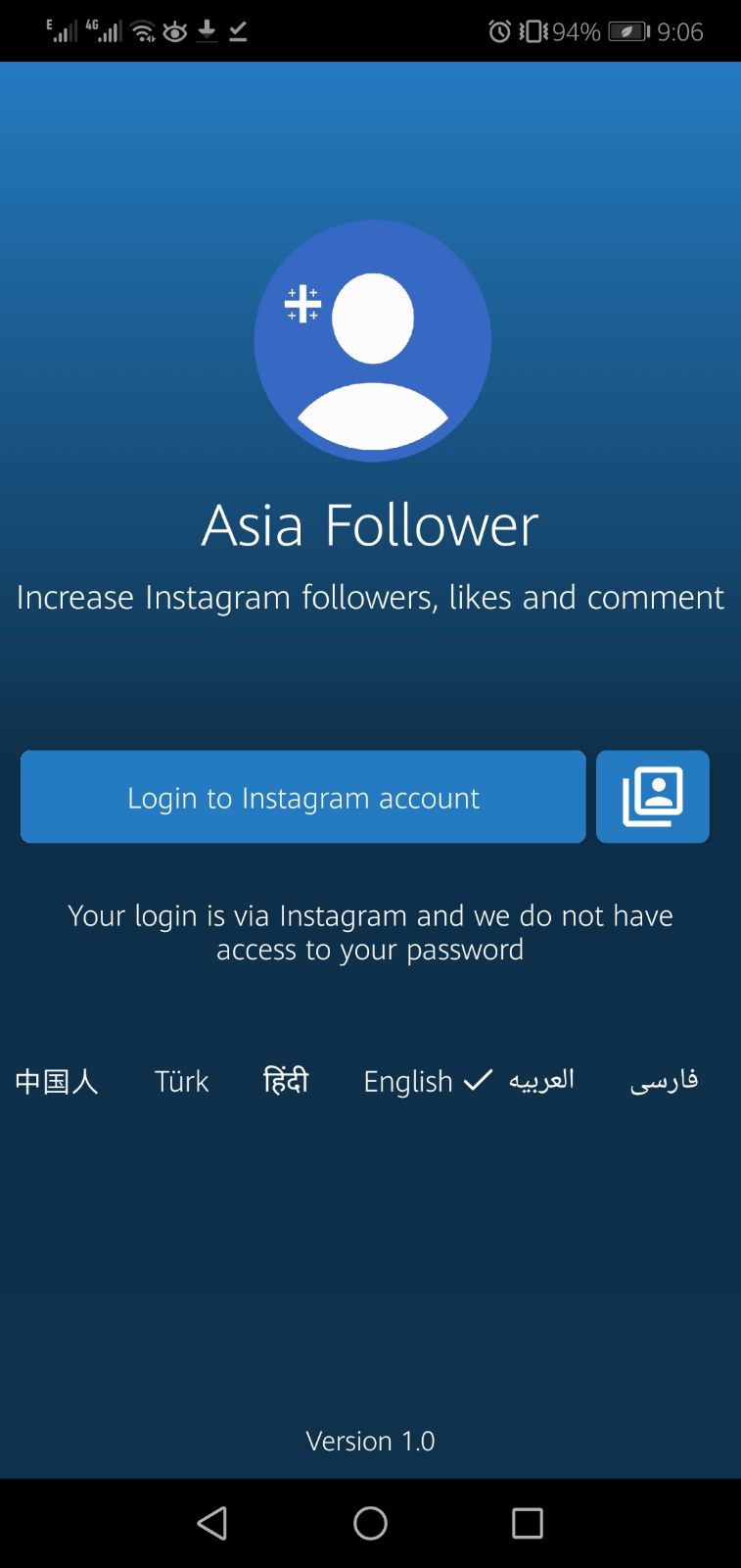 Select language and then log in to your Instagram account through this new app to send and receive free engagements on various Instagram accounts for free.