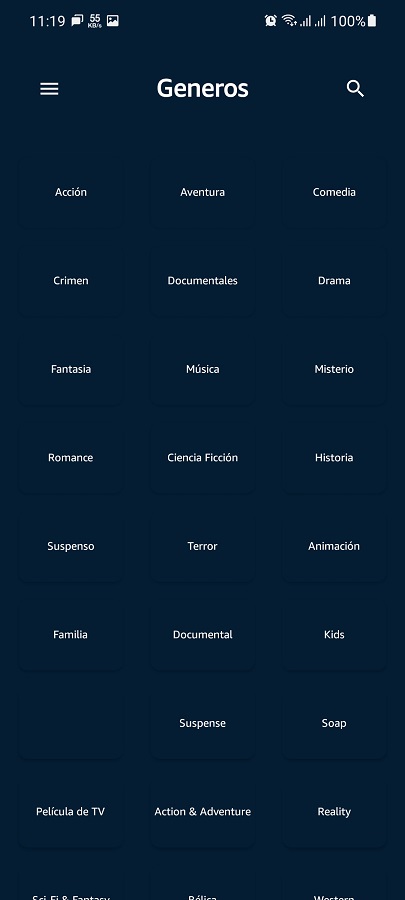 - Crime, Adventure, comedy, fantasy, Music, Romance, terror, History, Documentary, kids, Soap, Reality, Western, Sci-Fi, Animation, Action, etc.