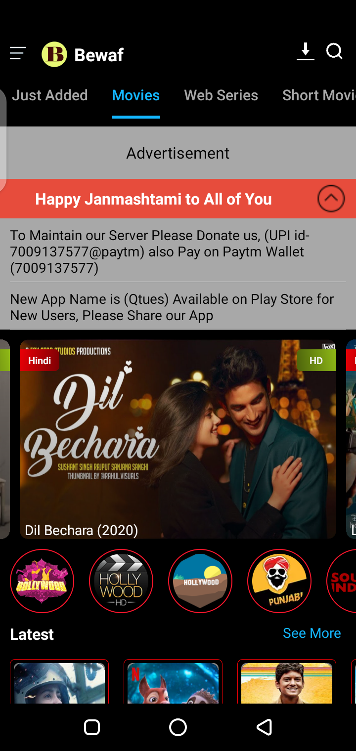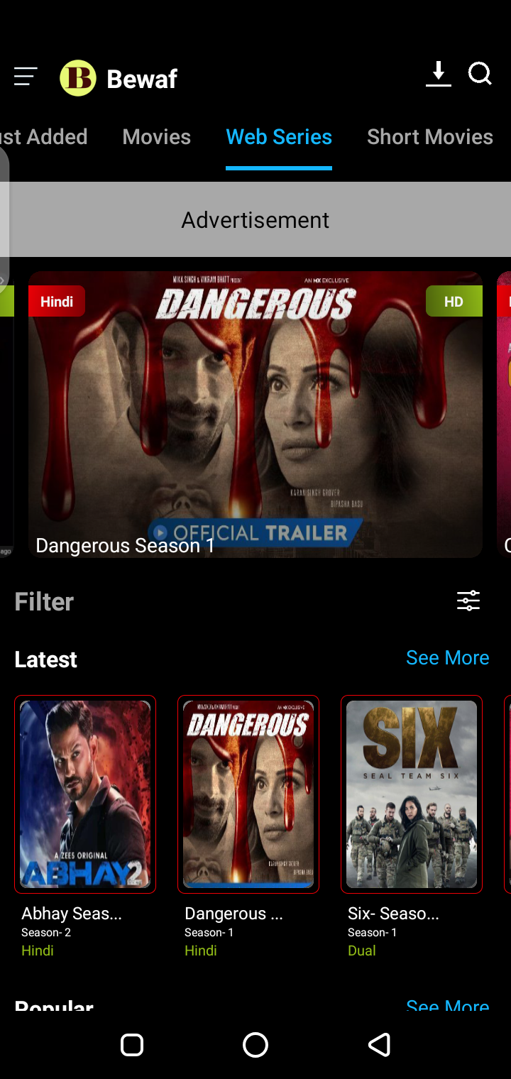 Download the Latest Version of Bewaf Apk Free for Android Mobile Phones and Tablets To Stream Movies From Hollywood And Bollywood.