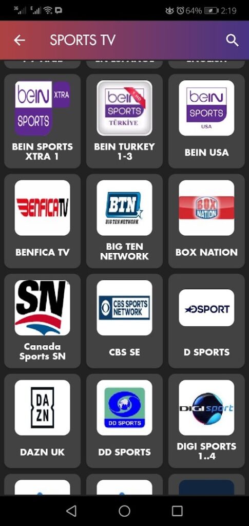 This tab is for sports enthusiasts where they will get sports TV channels like, A Spor, AD Sports, ACC Network, BBC Sports, BEIN Sports, CBS SE, D Sports, BIG Ten Network etc.