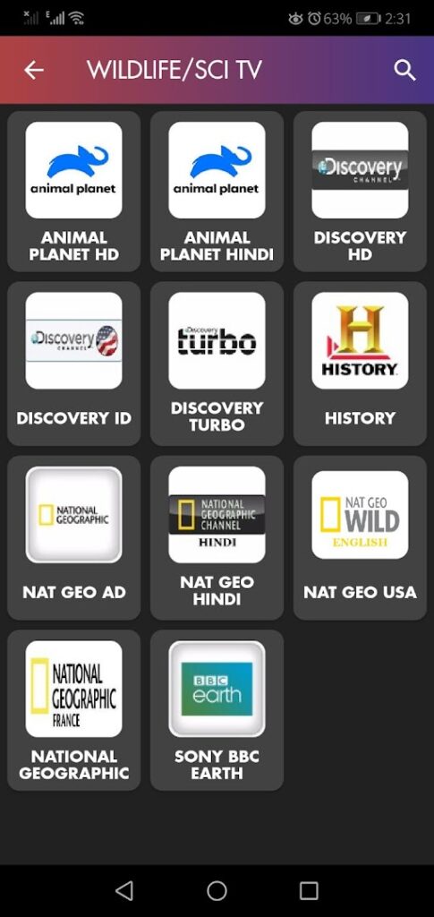 This category is made for kids where Android users will get kid’s TV channels like BBC Cbeebies, Cartoonito, Disney CH, Nick Hindi, Nick Jr, Majid TV, POGO, Sony YAY etc.