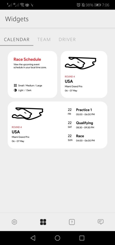As you know every widget app contains different themes, wallpapers, and others based on some event or many other things. This new widget app is totally based on Formula One car racing events.