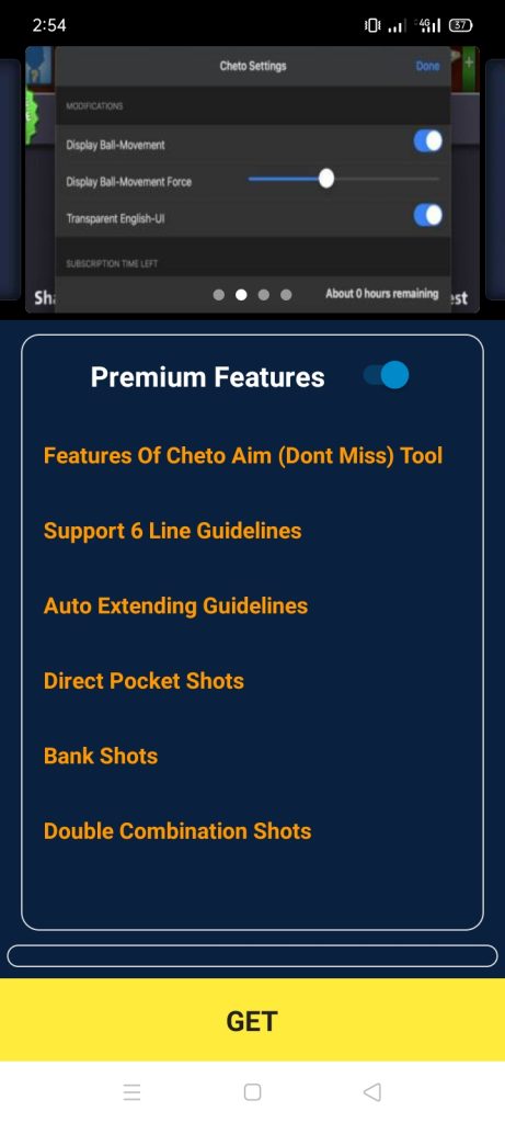 Choose your desired option from the above menu list and enjoy modifying the 8-ball pool game with built-in hacks for free. Players will get also a chance to use the premium features of the app by downloading Aim Pool Guidelines Tool V4 on their device.