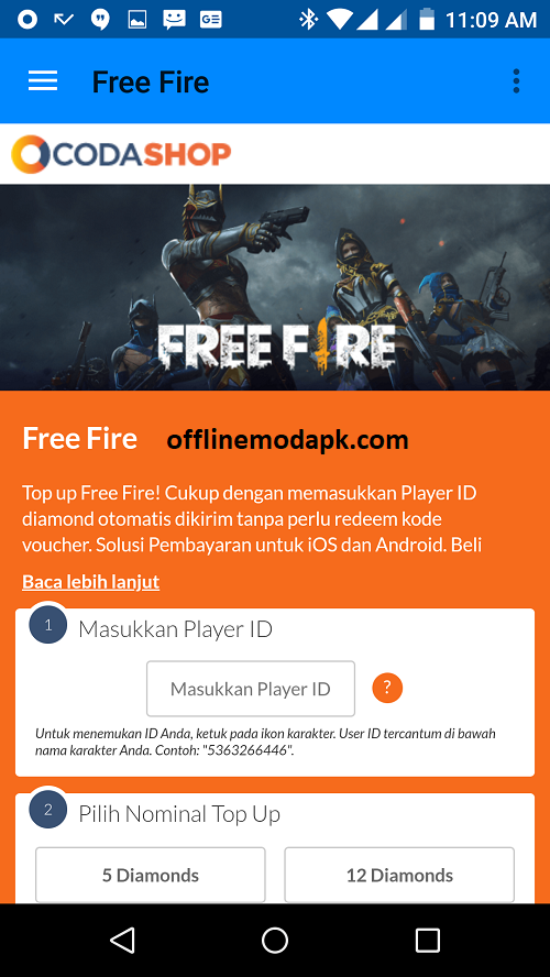 Codashop Free Fire Apk is an android app specially designed for Free Fire players to buy diamonds and get paid features. You can also buy vouchers to get a discount on diamonds.