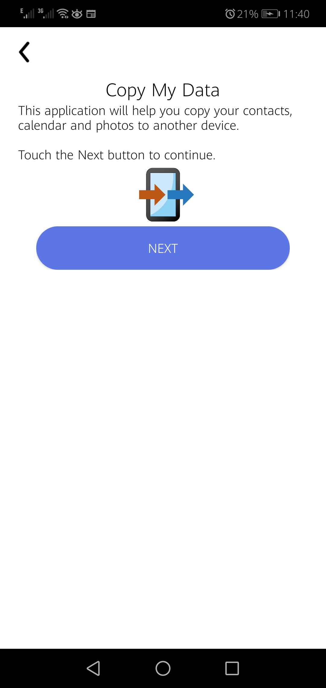 Once you grant all permissions now you will see a new tap where you will see the main dashboard of the app with the copy my data and next button option. If you want to copy your device data then tap on the Next button and you will see the next tab below-mentioned copy options like,