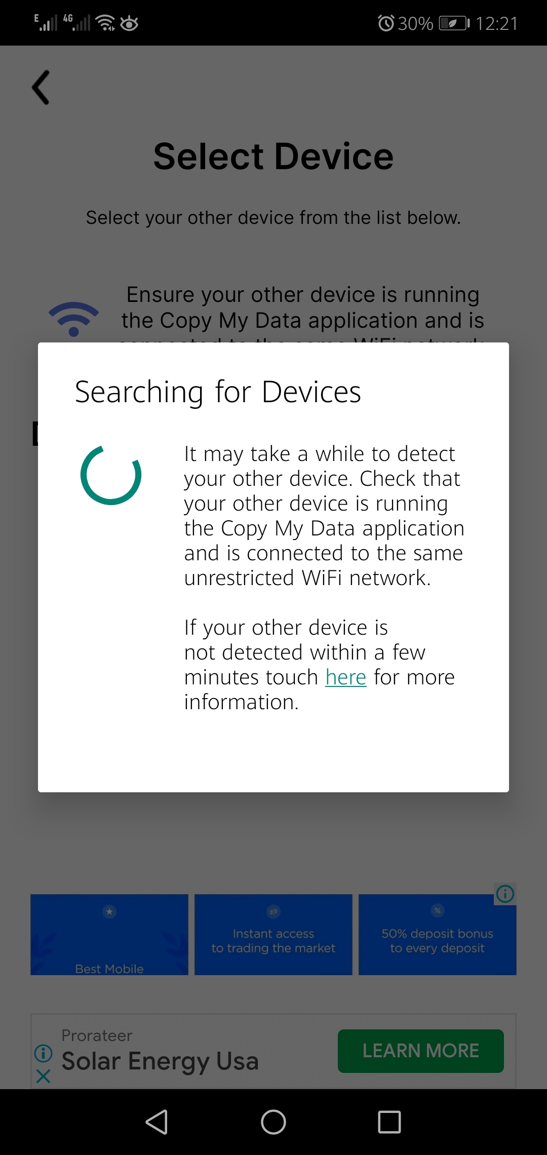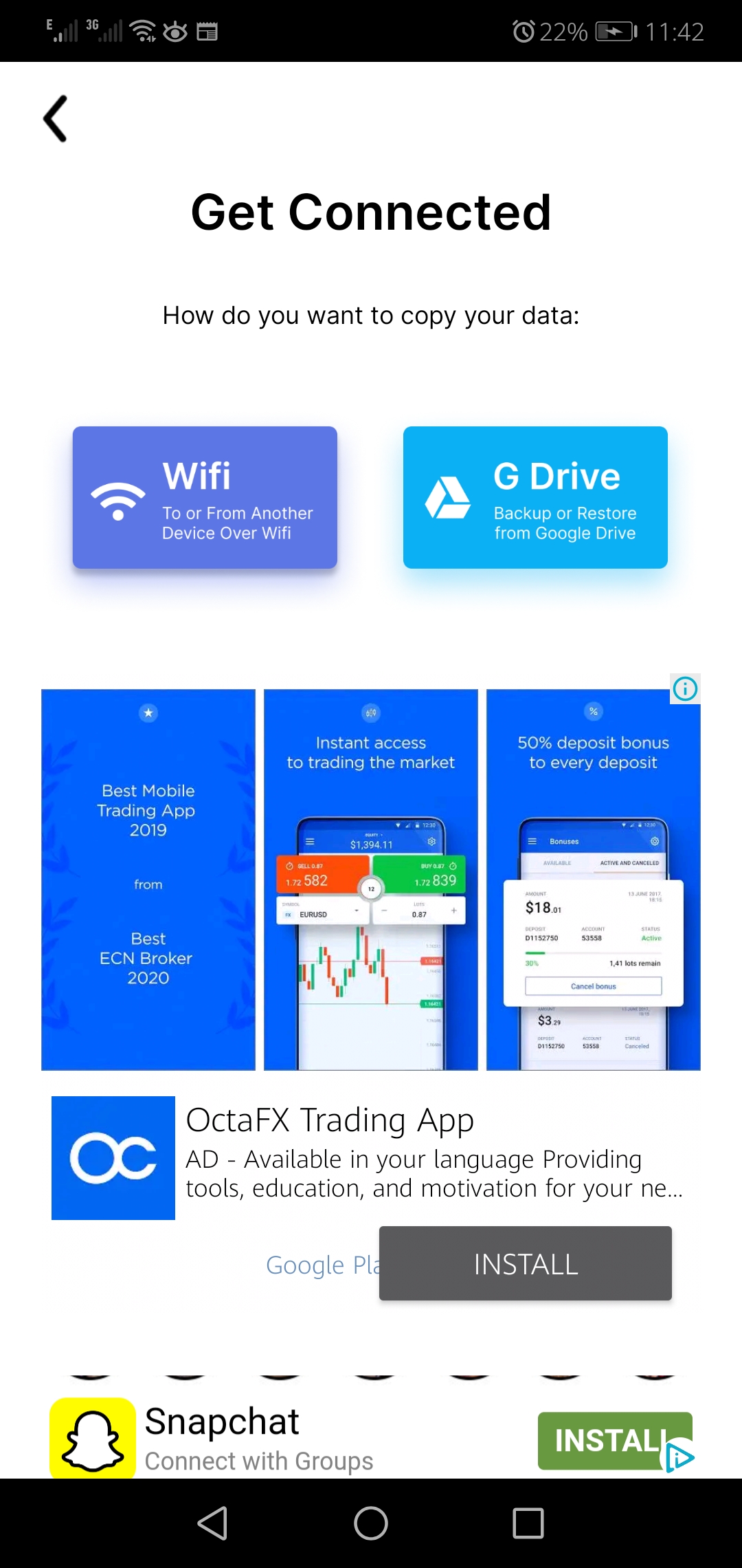 If you want to copy device data with wifi connection then tap op wifi o[ption and wait for a few seconds to connect with the other device on which you want to copy your data.
