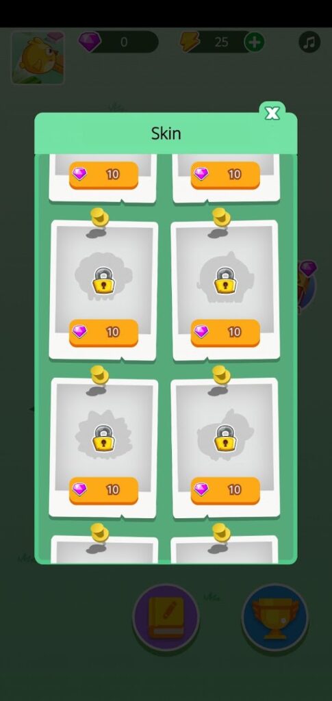 For higher jumps, players must unlock more skins with more abilities and powers. Players can use more than 25 different game skins. To unlock skins and other features in the game players have to collect gems which help them gain access to various features in the game.