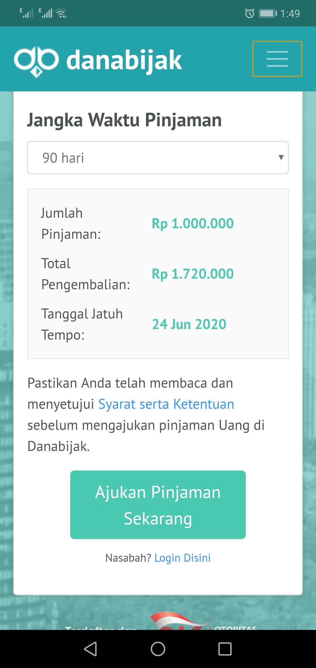 This application is totally safe and also legal to borrow money through this application. Because this application is an official online loaning application registered with OJK.