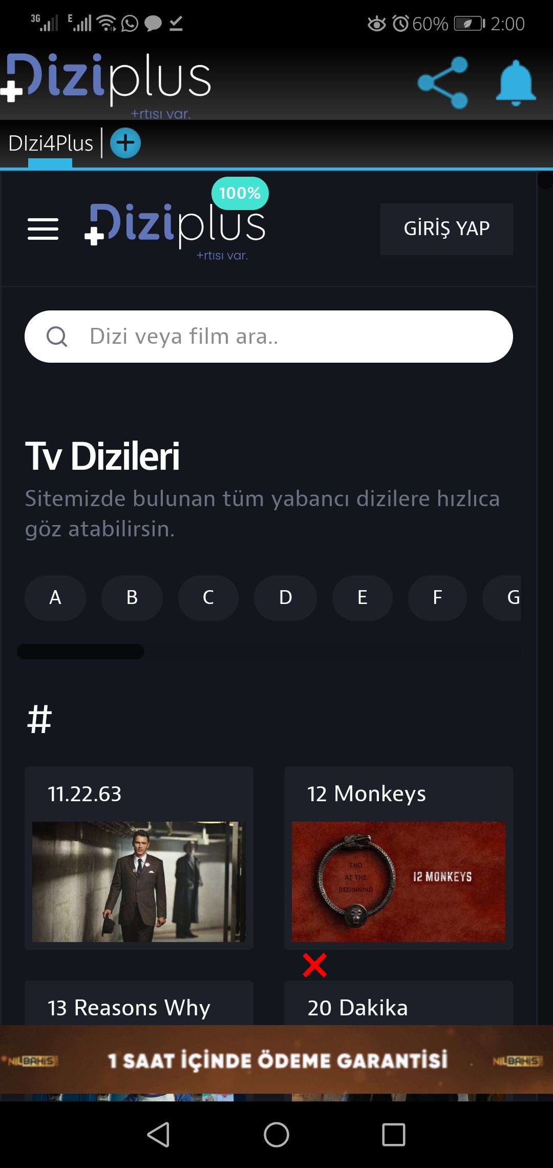 - 11.22.63, 12 Monkeys, 13 Reasons Why, 20 Dakika, 46 Yok Olan, 9-1-1, 91Days, Absentia, Ajin, Air gear, Alef, Alex Rider, American, Baby, Ballers, caddie Cadde, carnival Row, captain Tsubasa, Chuck, Claymore, Close Enough, Cobra Kai, Colony, Community and many more.