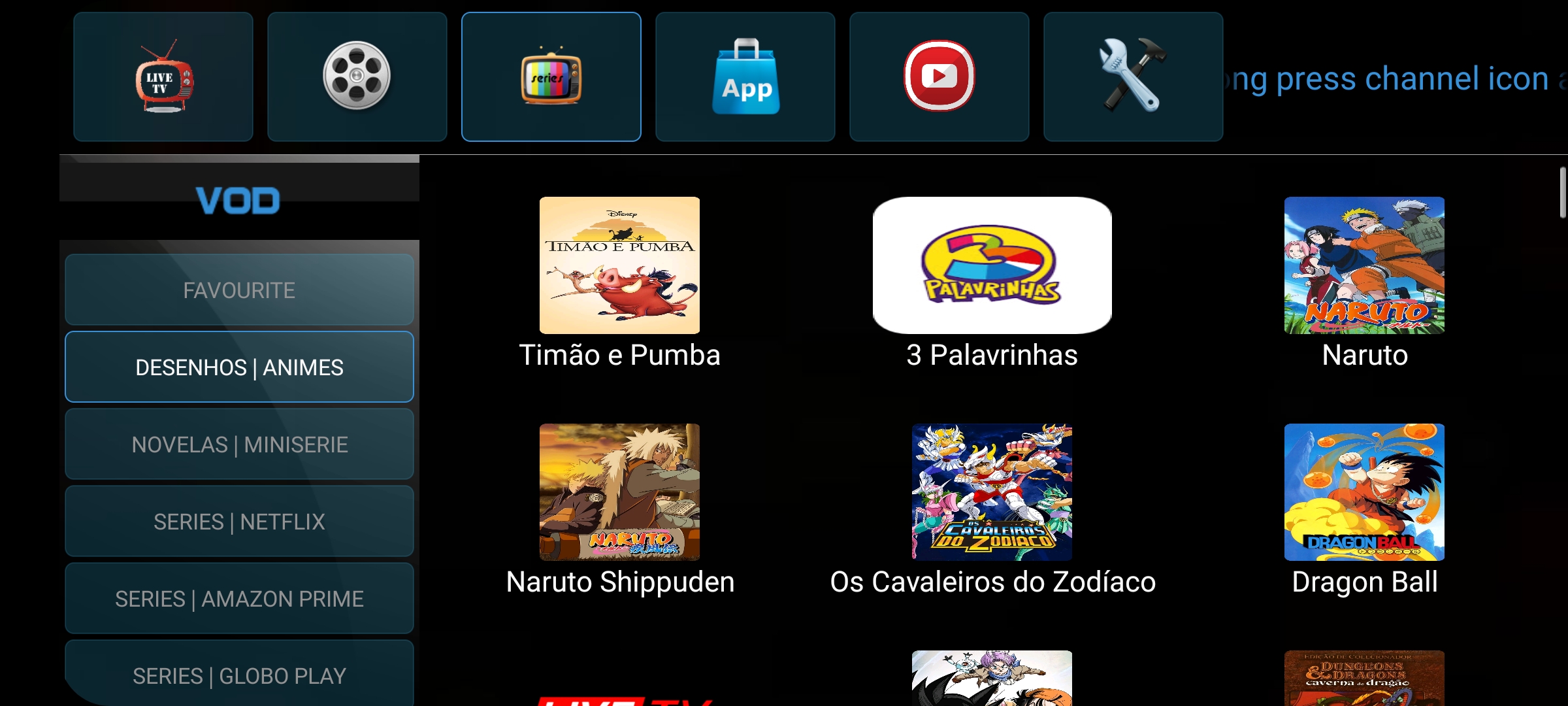 Choose any one of the above-mentioned options from the list that helps you to stream media content for free. If you want to stream live tv channels then choose the Live Tv option. For Movies choose VOD or series from the list above.