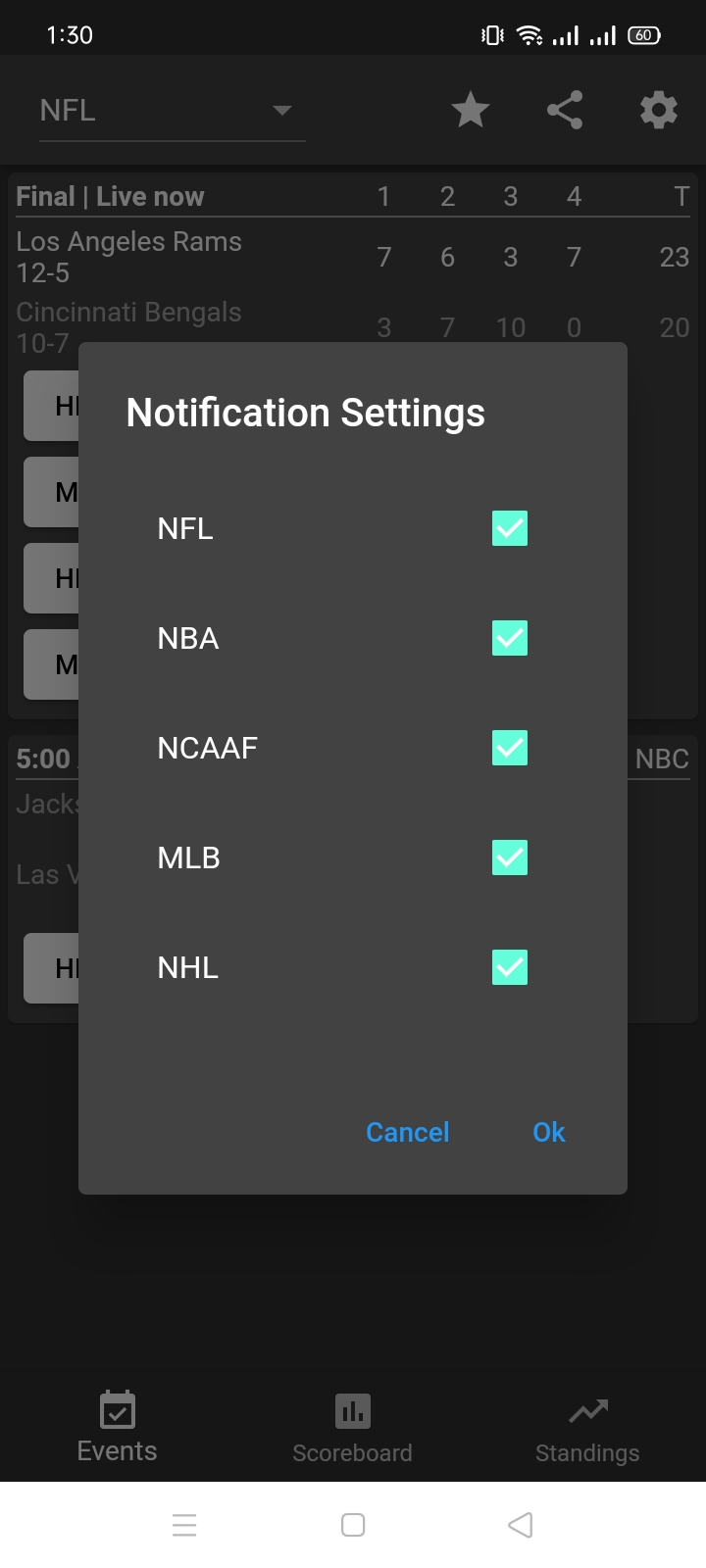 - In this tab, users will live basketball matches from National Basket Ball Association which has 30 Teams.