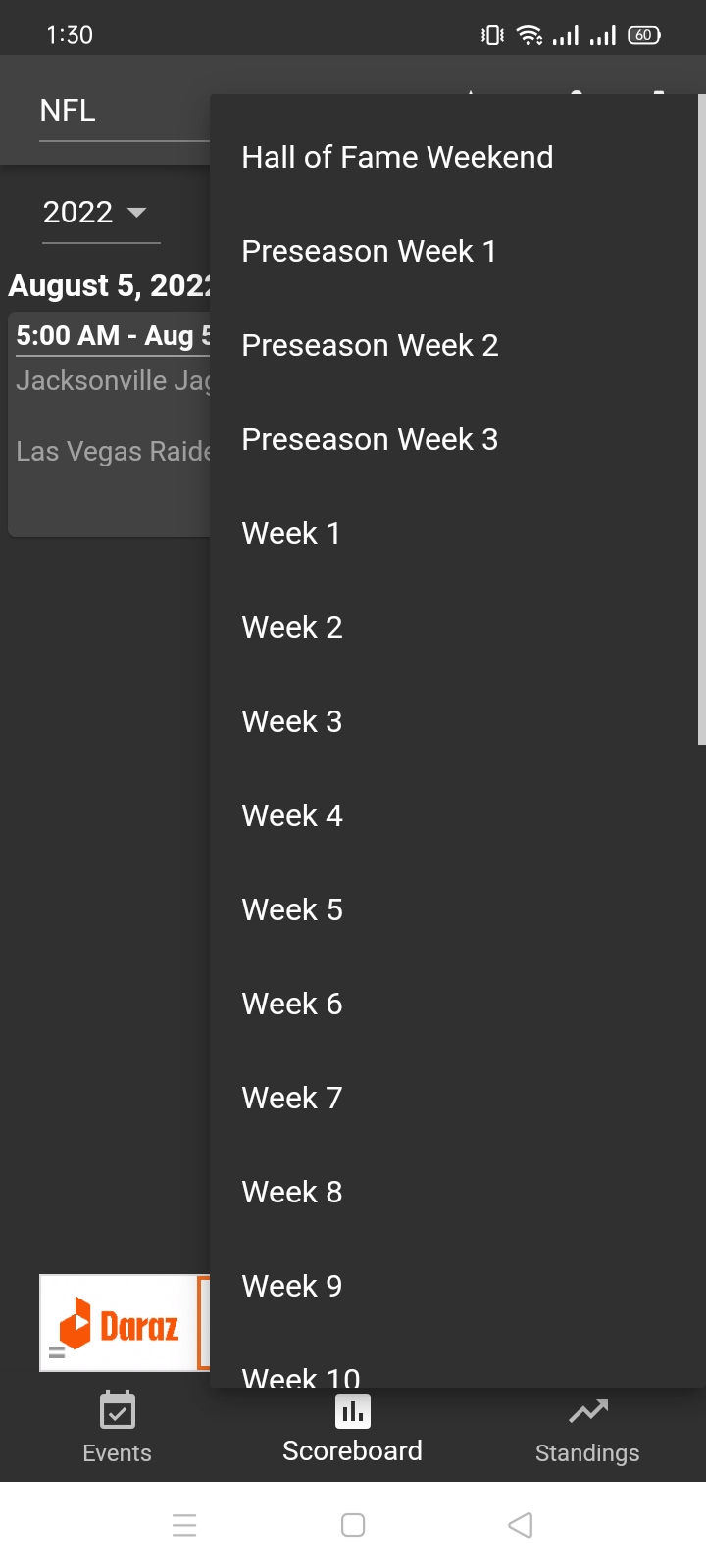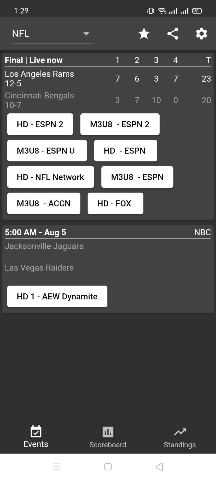 If you want to choose your desired sports events then choose the event option and you will see a new tab where you will see a list of all the above-mentioned sports leagues which you can easily stream by a tap on the league which you want to watch.