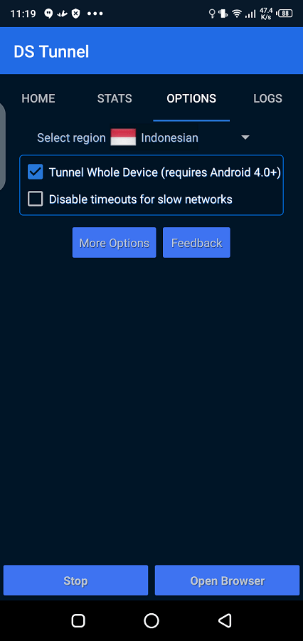While installing the app you need to allow all the permissions and also need to enable unknown sources from security settings. After installing the app on the Android phone now open it by tapping on the ds tunnel apk icon shown on your mobile device screen.