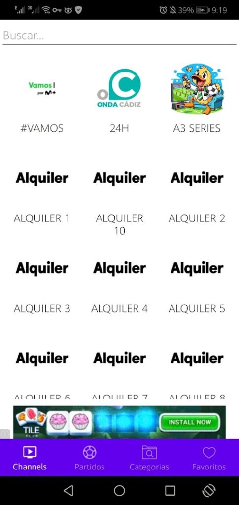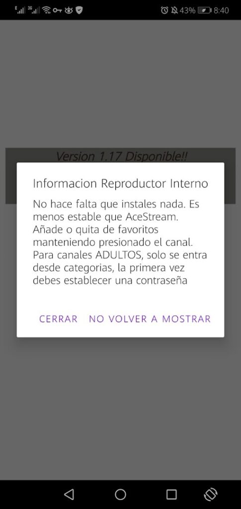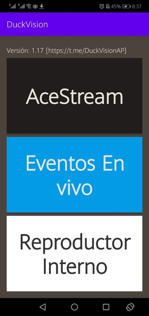 To access Live TV channels and many other features of the app, tap on Reproductor Interno. You will see an updated page with the menu list.