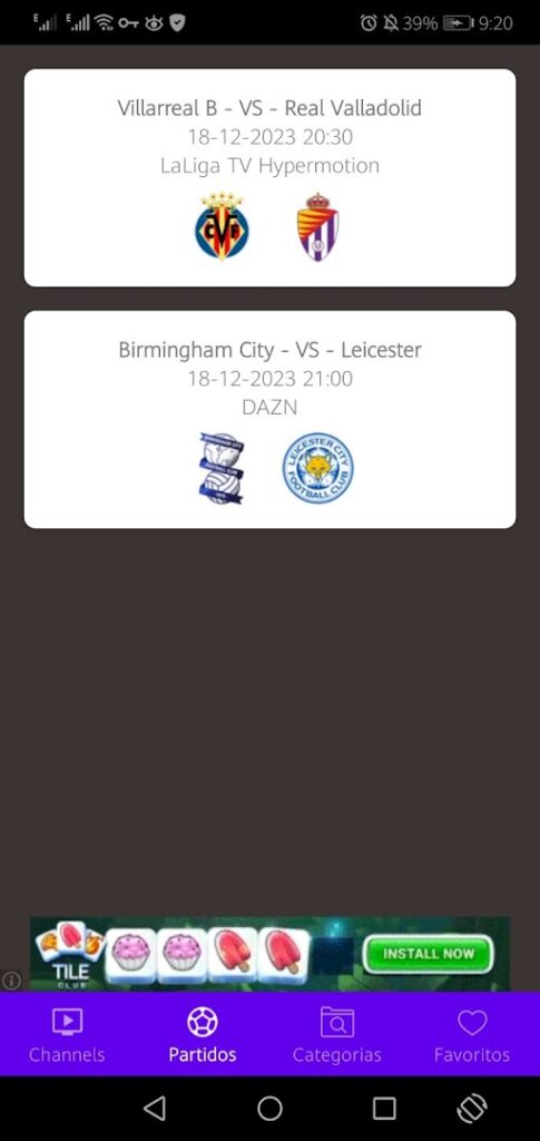 If you want to watch live matches, choose the Acestream option and you will see a list of live matches on your screen. To watch special Vivo sports events tap on Eventos En Vivo and you will access Vivo Sports events.
