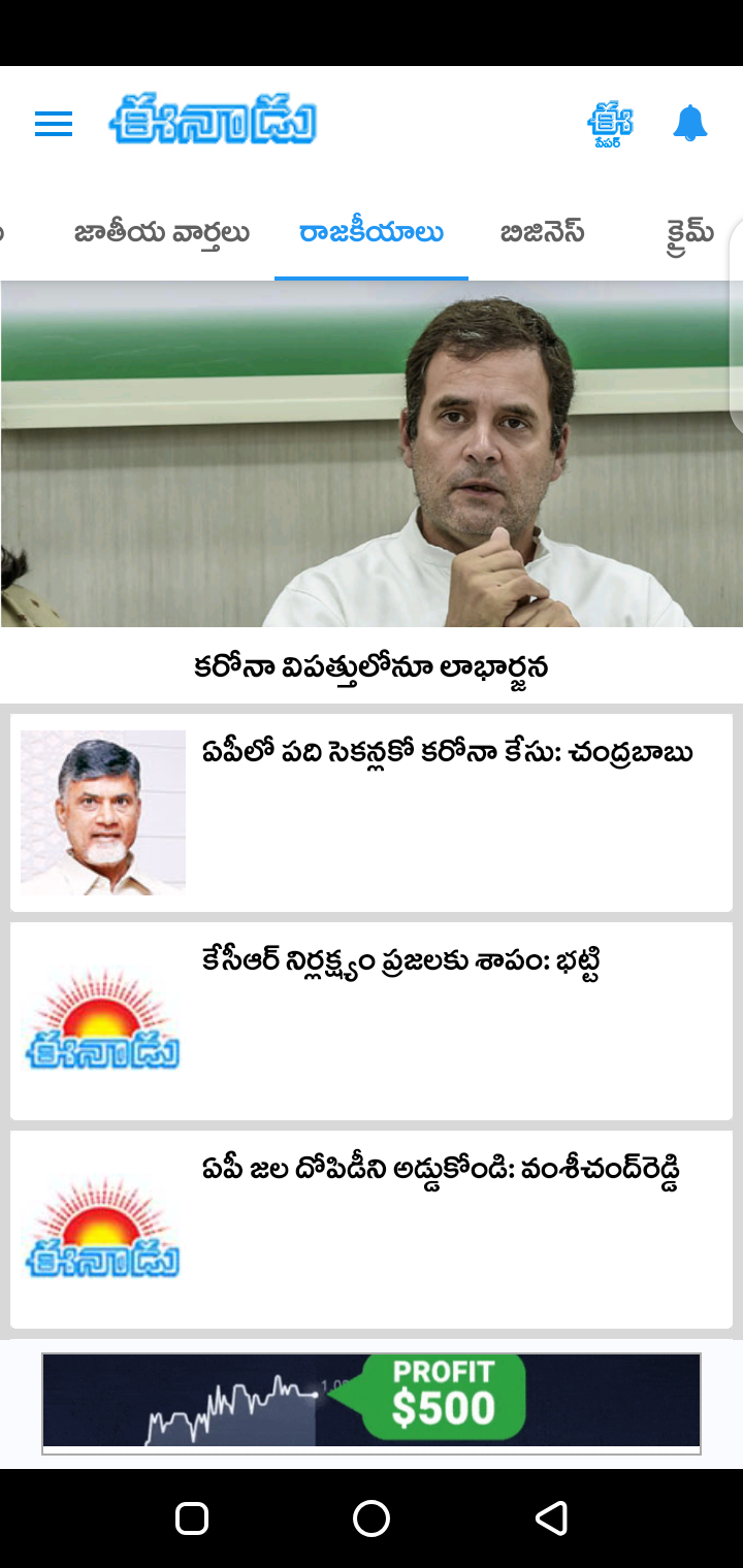 Categories in Eenadu Telugu Newspaper Apk