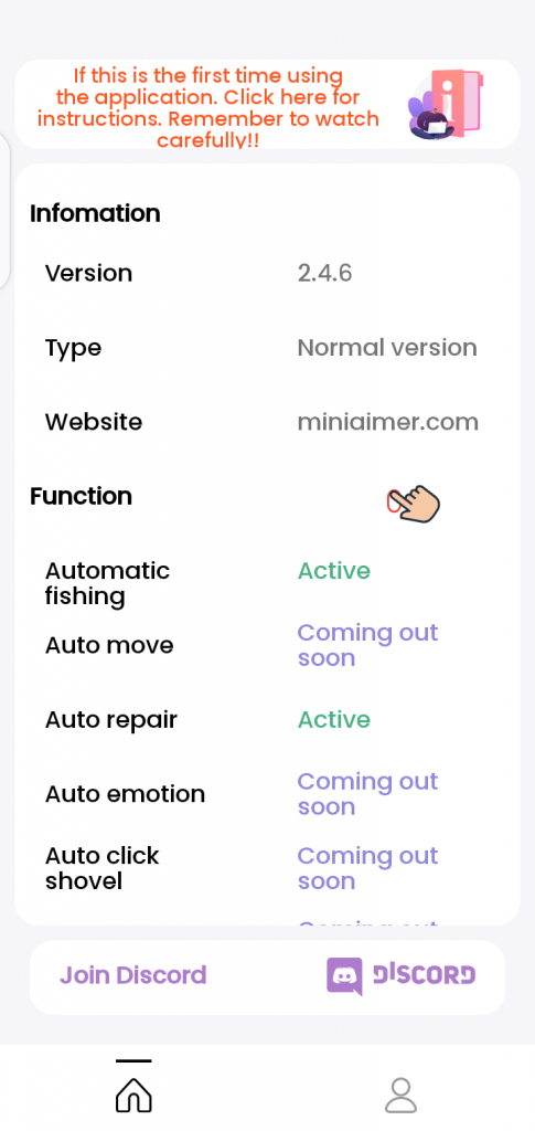 - Option to choose Discord Community to get updated information about the app.