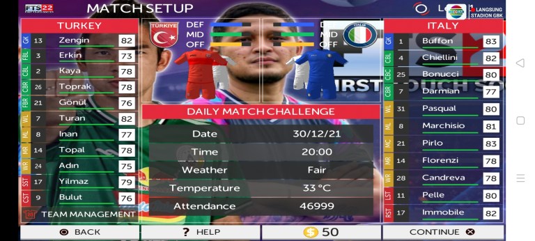 After choosing game mode now you need to set up a match by choosing players from different countries and leagues with just a single tap for free.