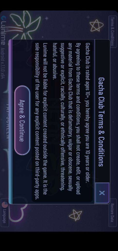 After choosing the language now you can tap on the restore option if you have played any old version of the game and want to start the game from previous options. If you are a new player then choose the tap screen option and you will get a new screen where you have to enter your age and proceed further.