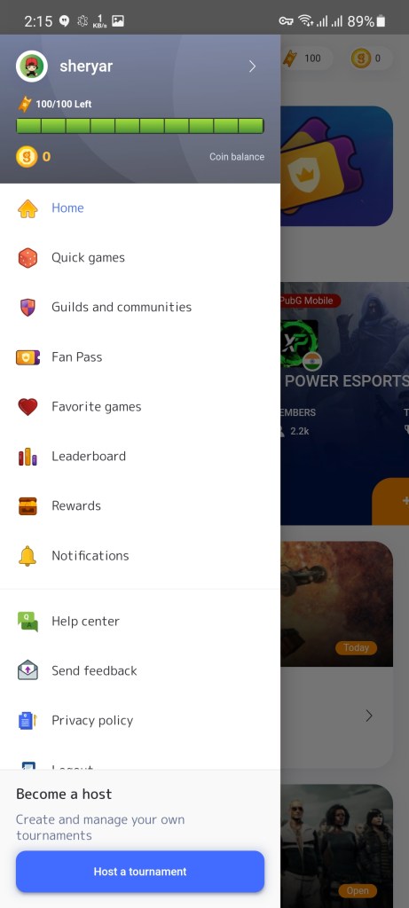 After installing the app open it and you will see the main page where you need to log in to your account if you have already created an account on this new app. If you are a new user then create an account using an email id or cellphone and then start hosting online game tournaments for free.