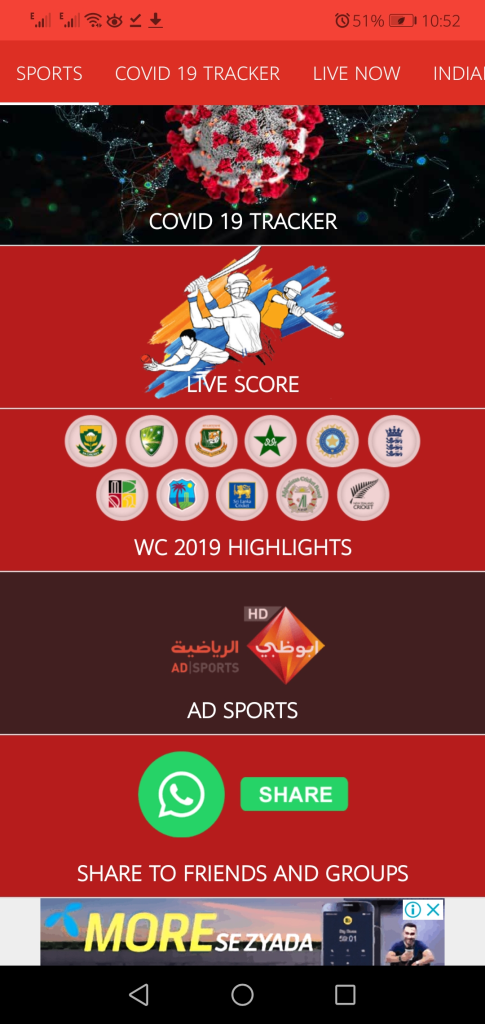By seeing name people thing, it only provides you a platform to watch sports-related video content but also has different categories for Covid 19 pandemic which allow you to get all authentic statistic about Covid 19 pandemic in worldwide and India.