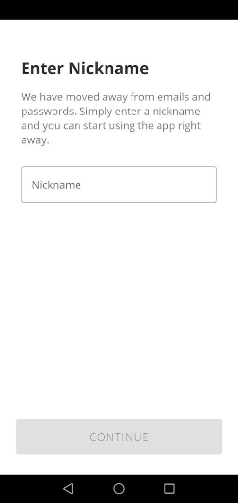 After installing the app open it and you will see the main dashboard of the app where you to enter your nickname. After entering your nickname you will see an additional tab where you have to accept the below-mentioned terms of service.