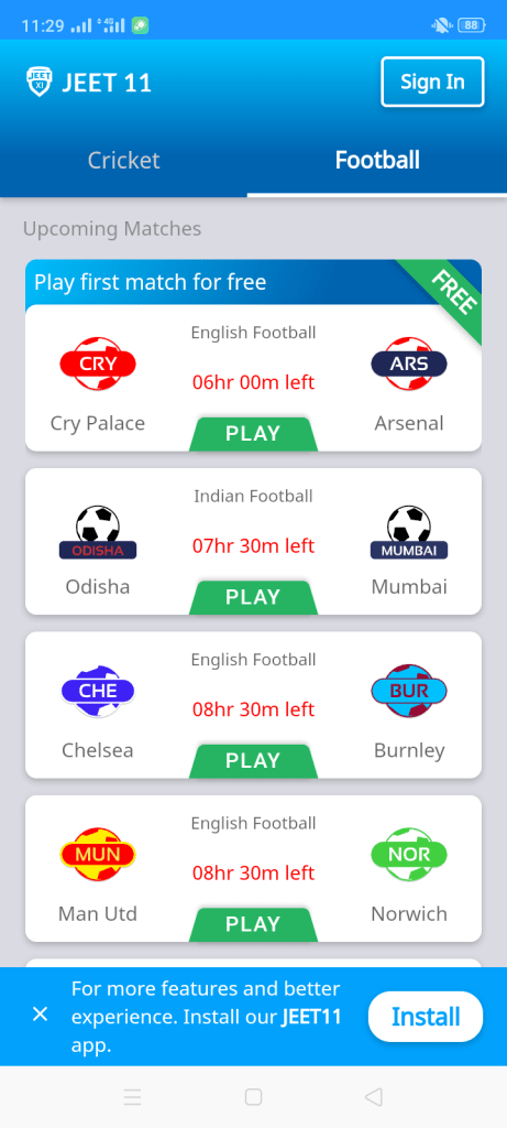 This is an Android application developed and offered by Jeet11 for android users from India to participate in different games like Kabaddi, Football, and Cricket and win real cash for free. This game is valid in some states of India. However, the developer will spread to other states in the future.