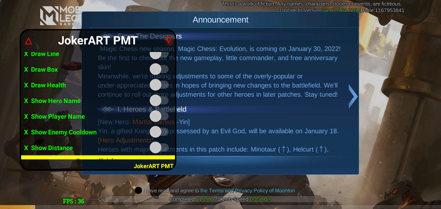 Joker Art PMT Android is the latest mod version of the ML game with multiple built-in hacks and scripts. If you want to insert built-in hacks and scrips to the MLBB game then try this new app and also share it with your family and friends. Subscribe to our page for more apps and games.