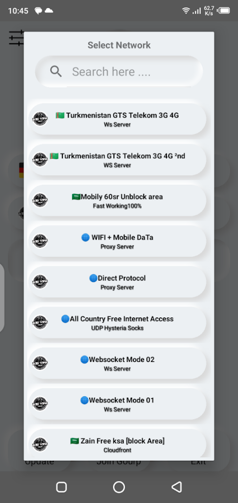 After installing the app open it and you will see the main dashboard of the app. Here you will see a list of premium and free network servers with the below-mentioned updated list like,