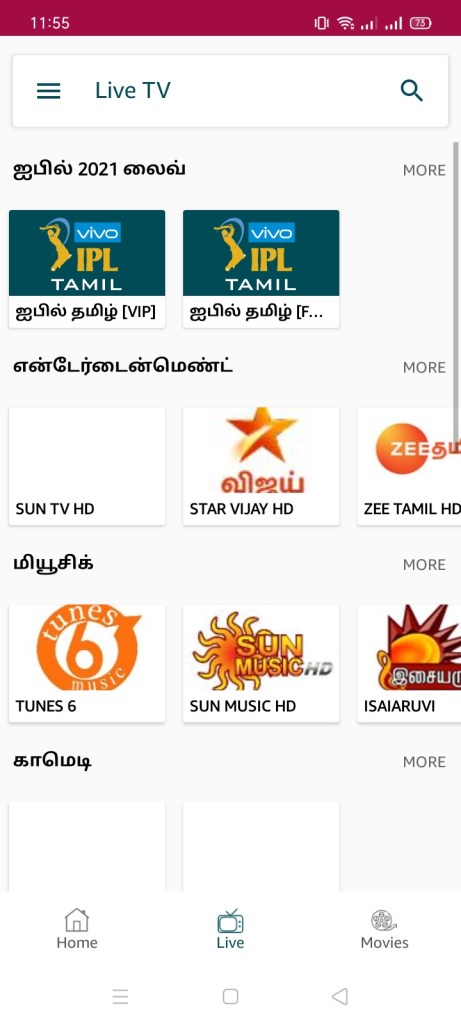 - In this category people will a vast collection of local, national, and international TV channels for free like Vivo IPL Tamil, news tv9 gujarati republic, YUPP Thirai, 24×7 republic tv tv9, Win TV, Makkal TV, ndtv 24×7 republic tv, DD Podhigai, polymer news, MK TV, ndtv india, tv9 gujarati republic tv, Thandhi TV, Sathiyam TV, Vasanth TV, Jaya Plus, etc.