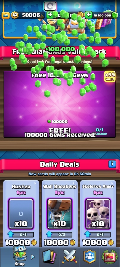 Friendly saying it is not easy for new players to get game gems which players in few amounts after winning matches and game campaigns. Most players don’t want to unlock premium items using real money or gems.
