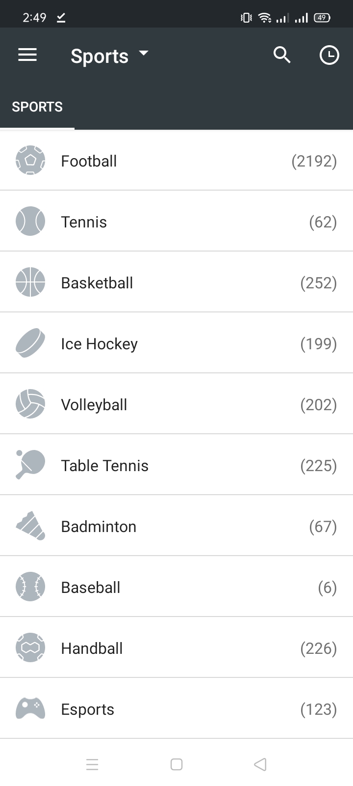 Football, Tennis, Basket Ball, Ice Hockey, Volleyball, Table Tennis, Badminton, Baseball, Handball, esports, cricket, Beach Volley Ball, snooker, Futsal, Air Hockey, Alpine Hockey, American football, athletics, Australian rules, auto race, Biathlon, Boxing, Chess, and many more sports.