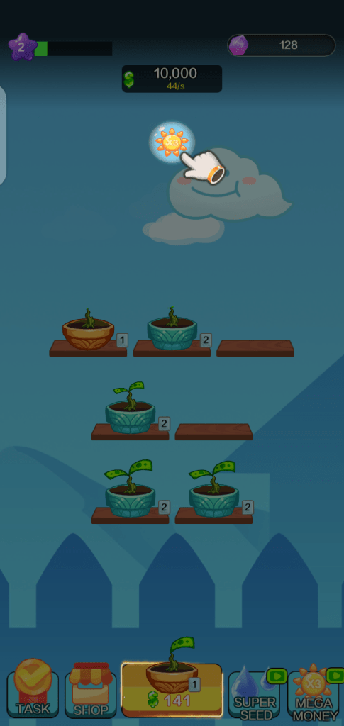 After creating an account now login to your account and start earning money by merging different trees with each other. Use advanced pots to0 earn more money. To unlock the latest pots completely different levels in-game.