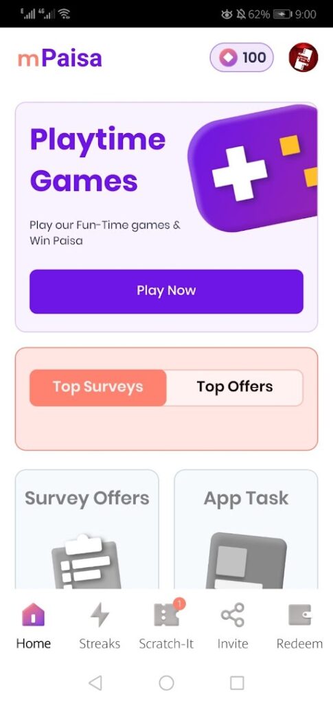 If you want to earn money then you have to play various free games added by developers and also complete different tasks and surveys which help you to earn mPaisa Coins which you can easily redeem into real money and various gifts using redeem options.