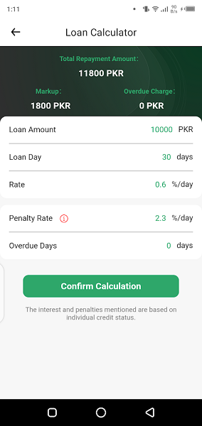 This app allows users to choose a time duration according to their need to pay loan instalments. The maximum time to pay all loan amounts is 90 days.