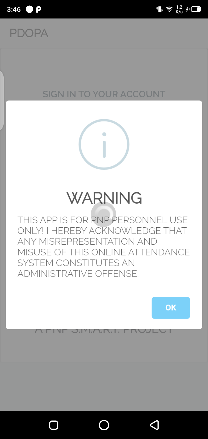 This application is only for PNP personnel use! Hereby acknowledge that any misrepresentation and misuse of this online attendance system constitutes an administrative offense.