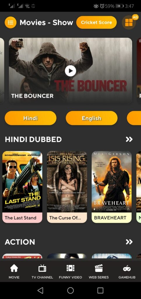 If you want to watch movies then tap on the movie option from the list and enjoy watching movies, series, and other media content in your desired languages for free.