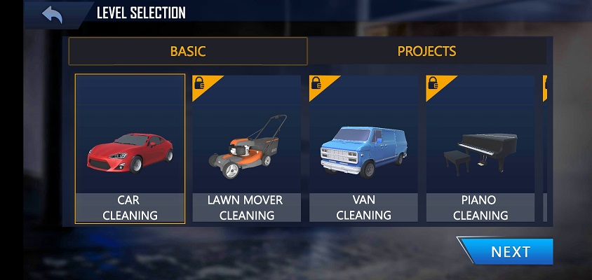 At a basic level of the game, players will get simple projects where they have to clean different vehicles, household items, and other below-mentioned things like,
