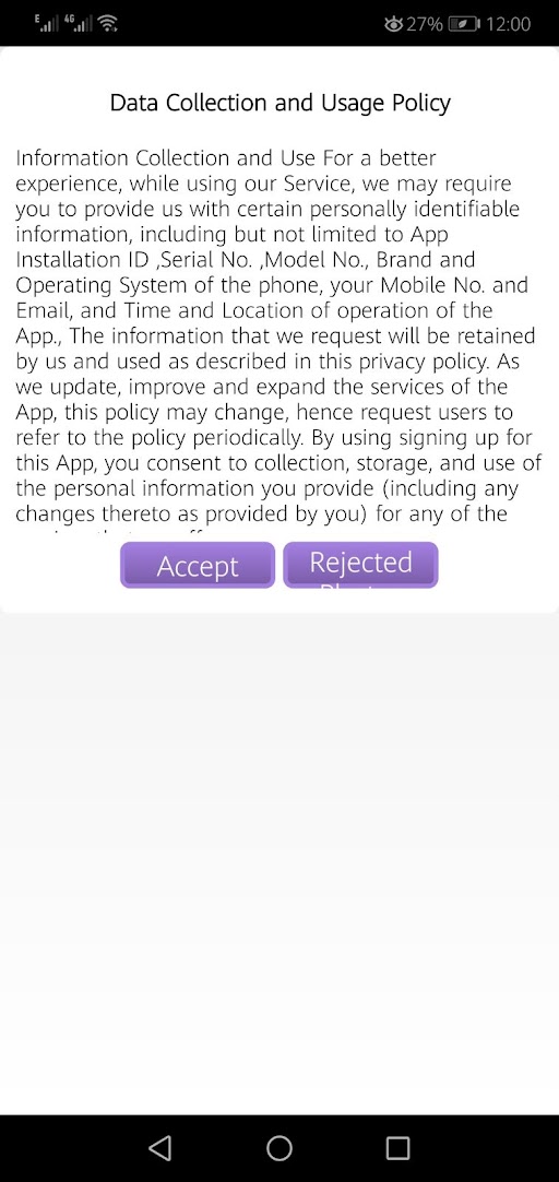 After installing the app open it and you will see the main page where you have to accept the terms and conditions. Once you accept the terms and conditions, you must now agree to the data collection and usage policy.