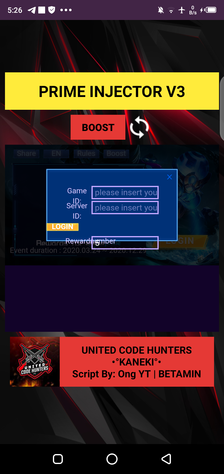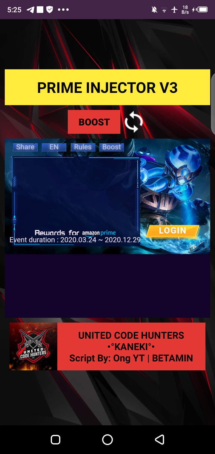 Prime Injector v3 is an android application specially designed for MLBB players to inject different cheats to their game account for free. If you want to inject cheats or hacks into the MLBB game, then download this app and also share it with your family and friends. Subscribe to our page for more upcoming apps and games.
