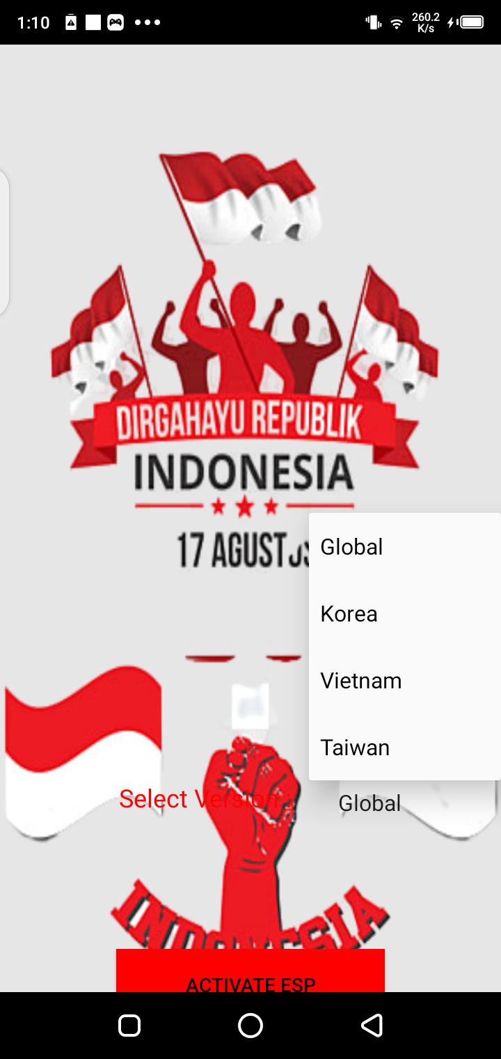 After installing the app open it you will see the home screen where you have the option to select the version of the PUBGM game like Vietnam, global, Korea, and Taiwan. After selecting the version now click on activate ESP button at the end of the screen.