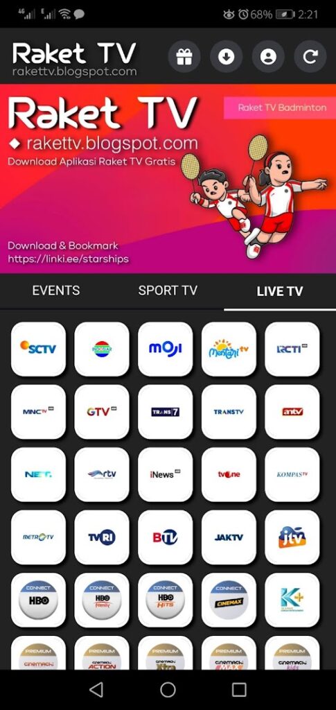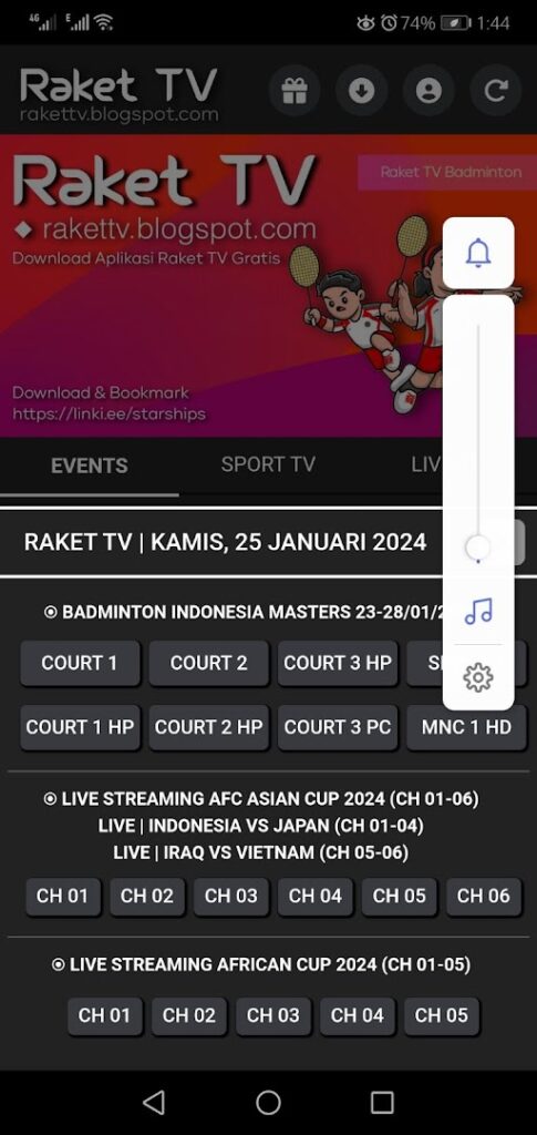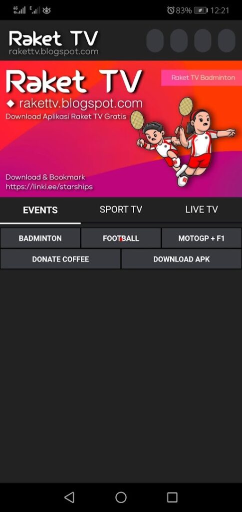 Raket TV is the latest sports streaming app for Indonesian users who want to watch local, national and international sports events and other live TV channels for free. Download and install the updated version of the RaketTV App to get an endless streaming experience on your smartphone and tablet.