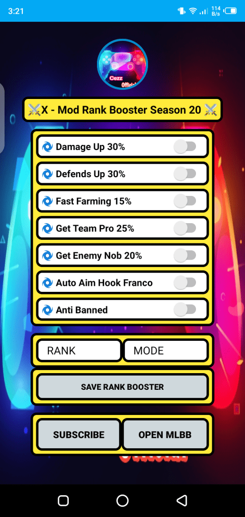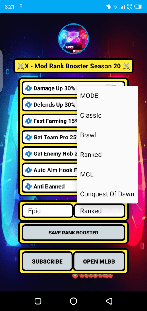 Rank Booster ML Cezz Official for Android is the latest booster app that helps ML players to make modifications in ML games.