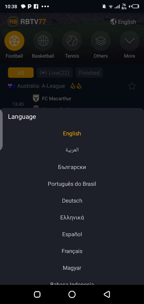 RBTV 77 APK is the latest sports app that helps Android and iOS users stream live tennis, football, soccer and other sports events for free. Download and install the latest version of the RBTV77 App on your smartphone and tablet to enjoy free live sports matches.