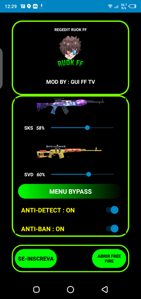 If you want to make a change in the sensitivity setting of the FF game then you must download and install the Apk file of the Regedit Ruok Application from our website using the direct download link given at the end of the article and install this new hacking application on your smartphone and tablet.