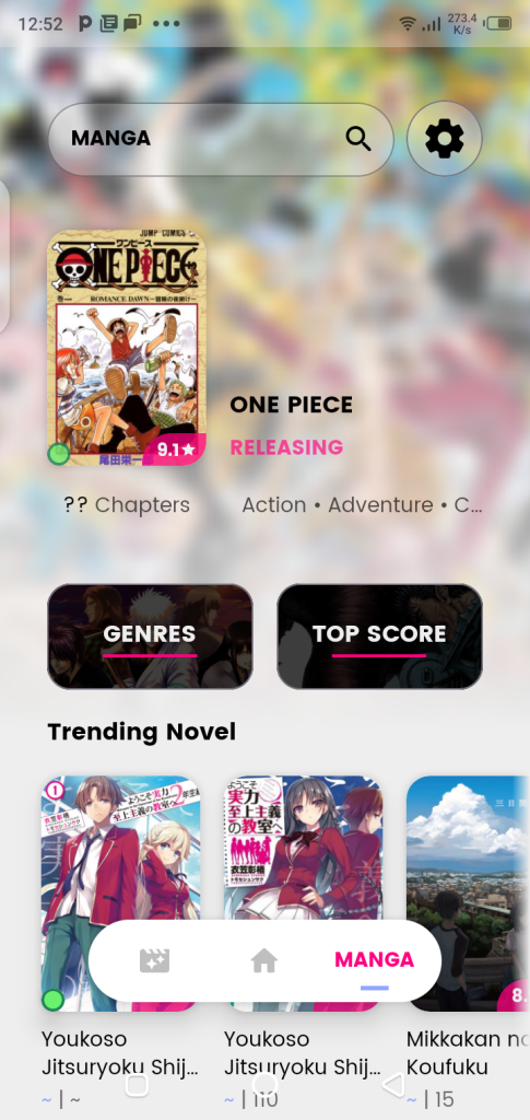 - As the name indicate this tab is for manga stories where users will get manga both original and translated manga stories with various image quality for free.